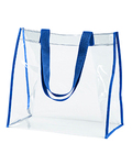 PVC; Clear PVC body; Contrasting binding; 19" contrasting top carrying handles; 12"W x 12"H x 6"D ; Requires California Prop 65 Warning Label;