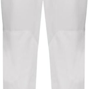 * 12 ounce per linear yard, 100% polyester stretch double knit * "R RUSSELL" back left hip" * Branded silicone knitted elastic waistband with tunnel belt loops * Two-snap closure * Zipper fly * Two set-in double welt back pockets with button closure * Reinforced knees * Elastic cuffs