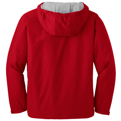 A jacket as spirited as your team. With sporty styling, the nylon shell repels water while the sweatshirt fleece lining in the hood and body provides comfort and warmth.